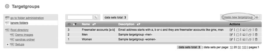 In CPN, you are offered the option to sort the subscribers in target groups. There are many possibilities for organization – such as sex, age or interests. In order to simplify the beginning, 3 target groups are already defined in CPN.