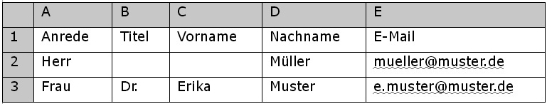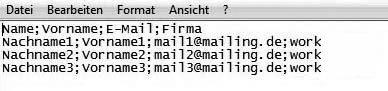 Maybe you have already collected email addresses to which you want to send a newsletter. No matter in which database these information are stored – you only need to save them in a CSV file (for example with Excel) and import them CPN. You can pack your CSV file as a zip to accelerate the uploading of large files. That's how it works:In the first line of the table, there should be field names – first name, surname, email address etc. An example: |