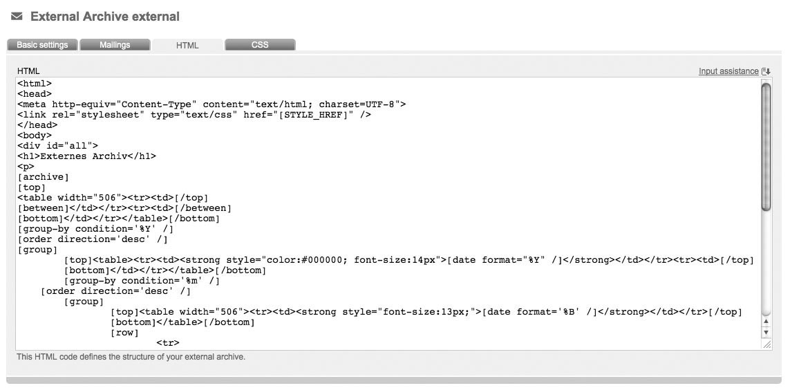 While creating your external archive, CPN generates an html source code in the background, which defines the structure of your external archive. If you want to edit the look of your shown archive, you have to edit the source code, which requires appropiate HTML knowledge.