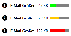 Außerdem lässt sich die angezeigte Vorschau als PDF- oder HTML-Datei exportieren, beispielsweise zu Archivierungszwecken. Zur Kontrolle Ihrer Versandkosten lässt sich oben rechts per Klick auf 'Jetzt berechnen'die Größe der E-Mail berechnen.
